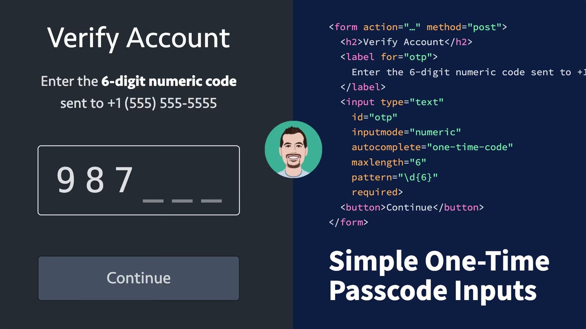 Simple one-time passcode inputs. Tyler Sticka explains how a fully functional one-time passcode input can be built using plain HTML — no JavaScript, no CSS hacks, no third-party libraries. With attributes like