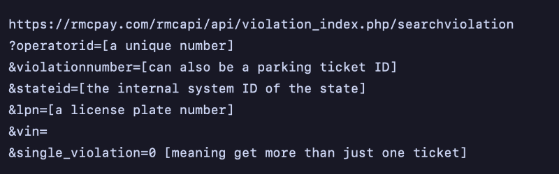 My personal favorite feature is the Pay Now button. Because I have the data of the city and the associated payment subdomain, you theoretically could pay someone's parking ticket for them!
