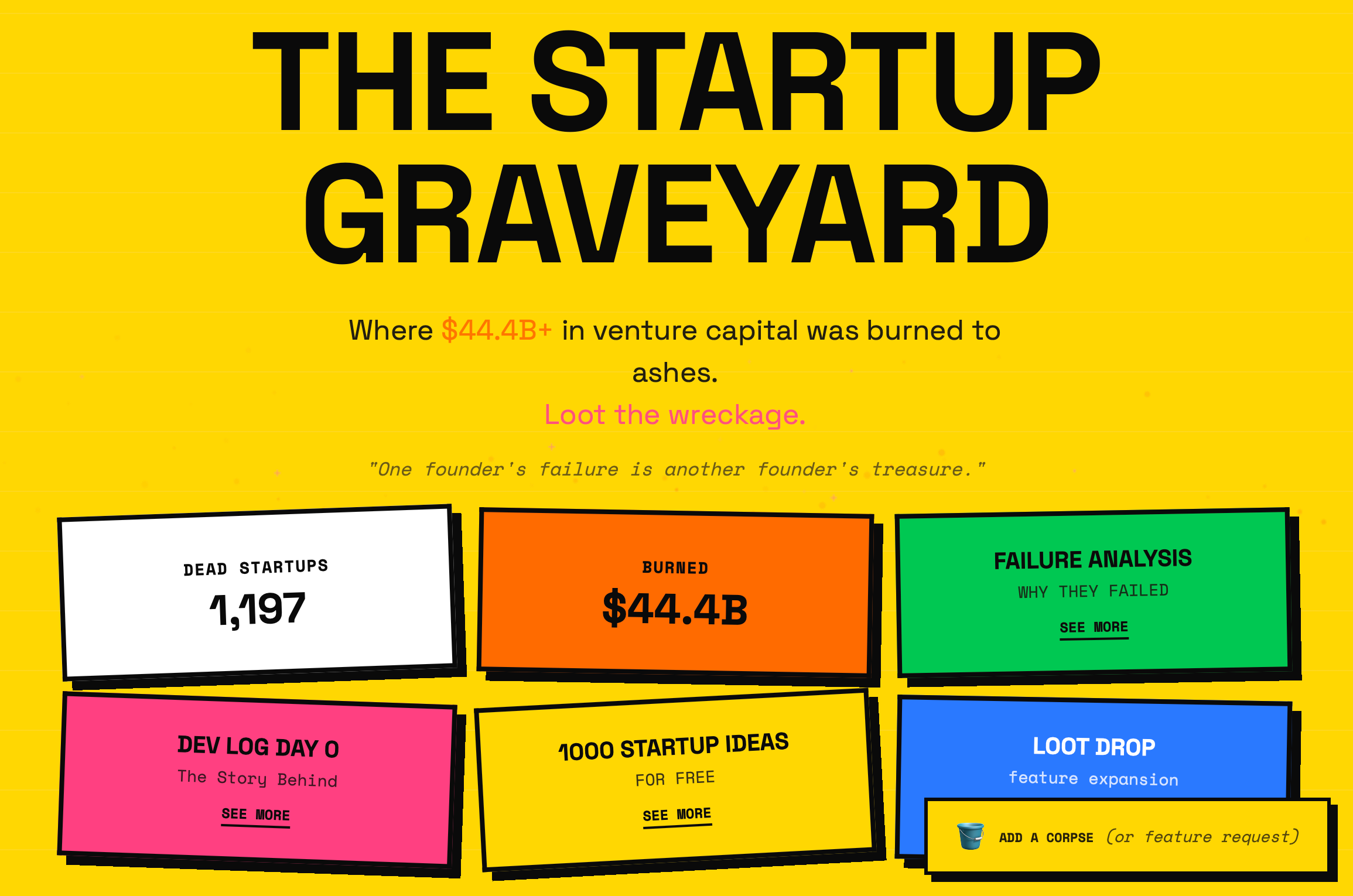 The Startup Graveyard Where $44.4B+ in venture capital was burned to ashes.