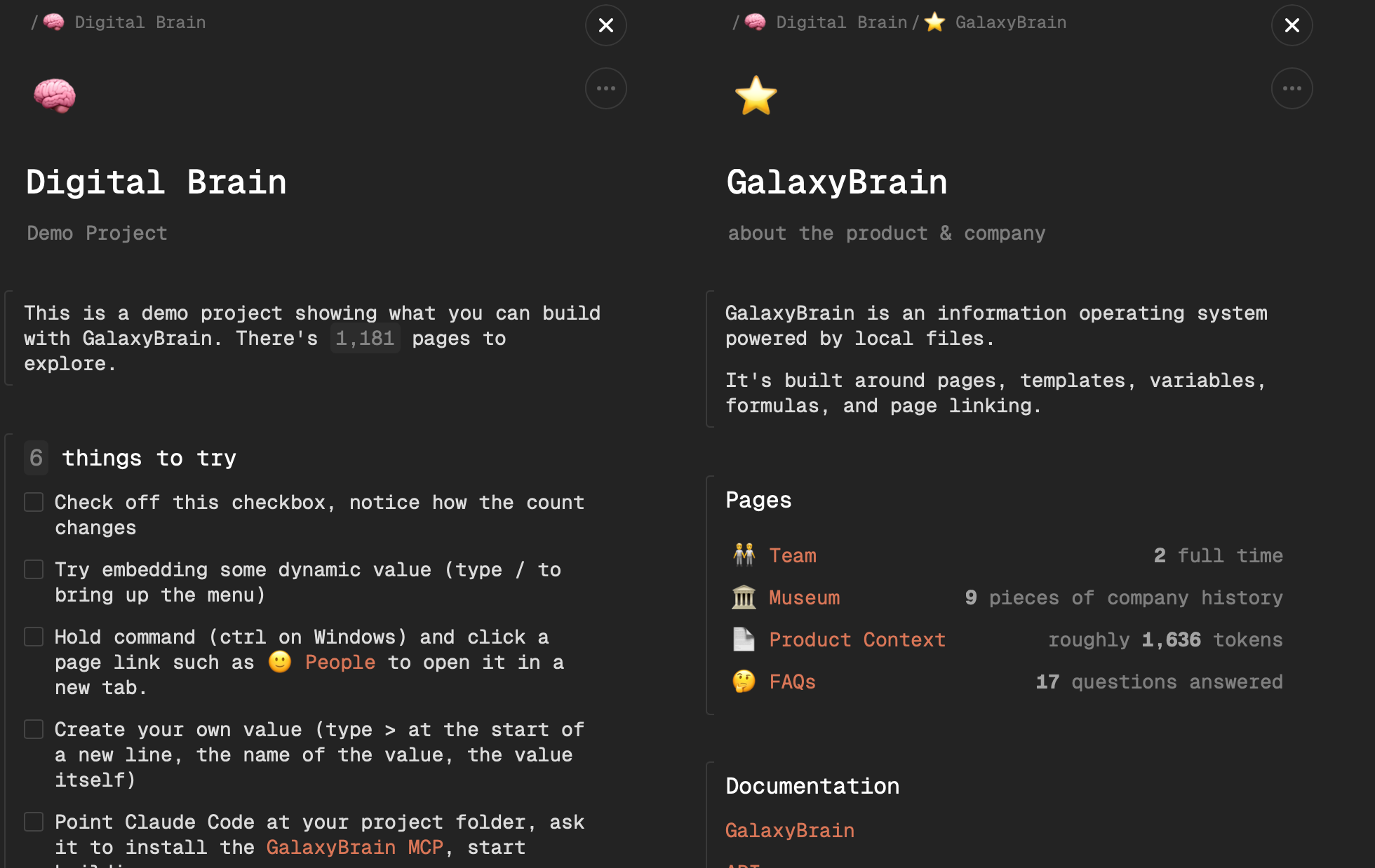 GalaxyBrain If you live in the world of information collection you might find this app very useful. It holds information in a document that's interactive — you can navigate between panes, change values, toggle fields, run calculations, etc. Tagline: "Write like a document, calculate like a spreadsheet".
