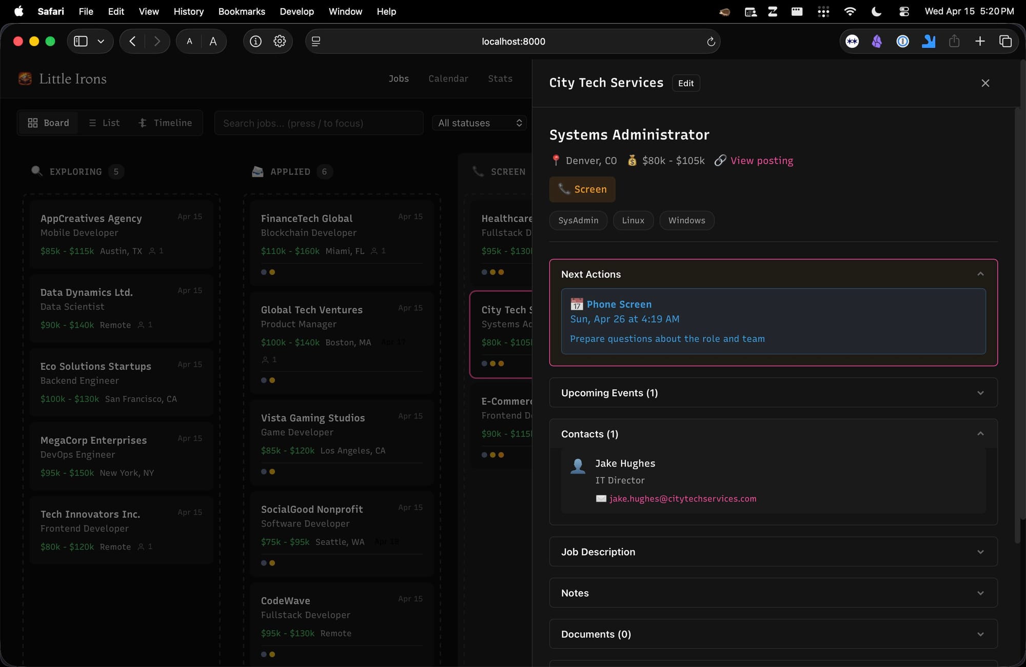 Little irons For people looking for jobs, a tool that helps you track "all your little irons in the fire" — kanban board, calendar sync, email forwarding, helpful AI, Chrome extension, and more.
