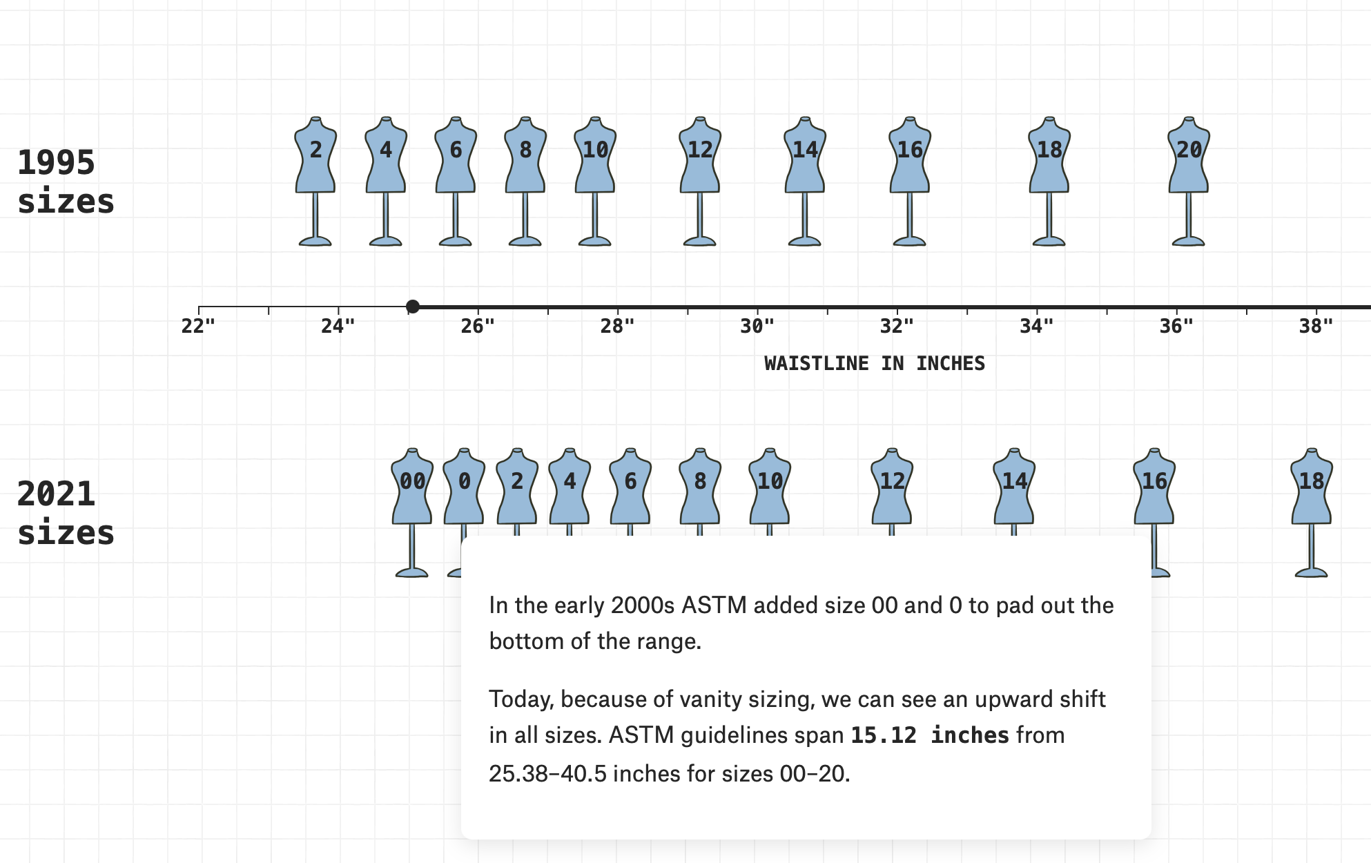 Womens Sizing If you're into the history of women sizing (cloths) you'll enjoy reading this. If you're into websites designed to inform, you'll love scrolling through this. Wonderful UI.