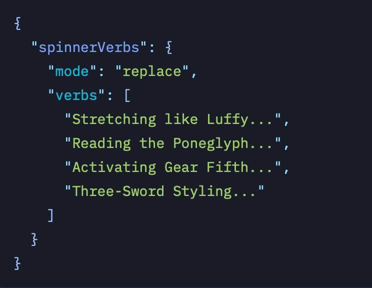 How I Turned Claude Code's Thinking Indicator into a One Piece Adventure When Claude Code processes a request, it shows a spinner with verbs like “Considering…” or “Analyzing…”. Turns out you can tell it which phrases to show … a source of inspiration?