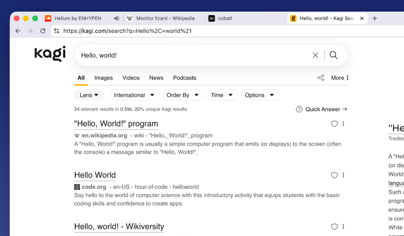 Helium Browser New open-source browser based on Chromium with ad-blocking by default. No adware, no bloat, no noise. I like that they demo Kagi as the default search engine.
