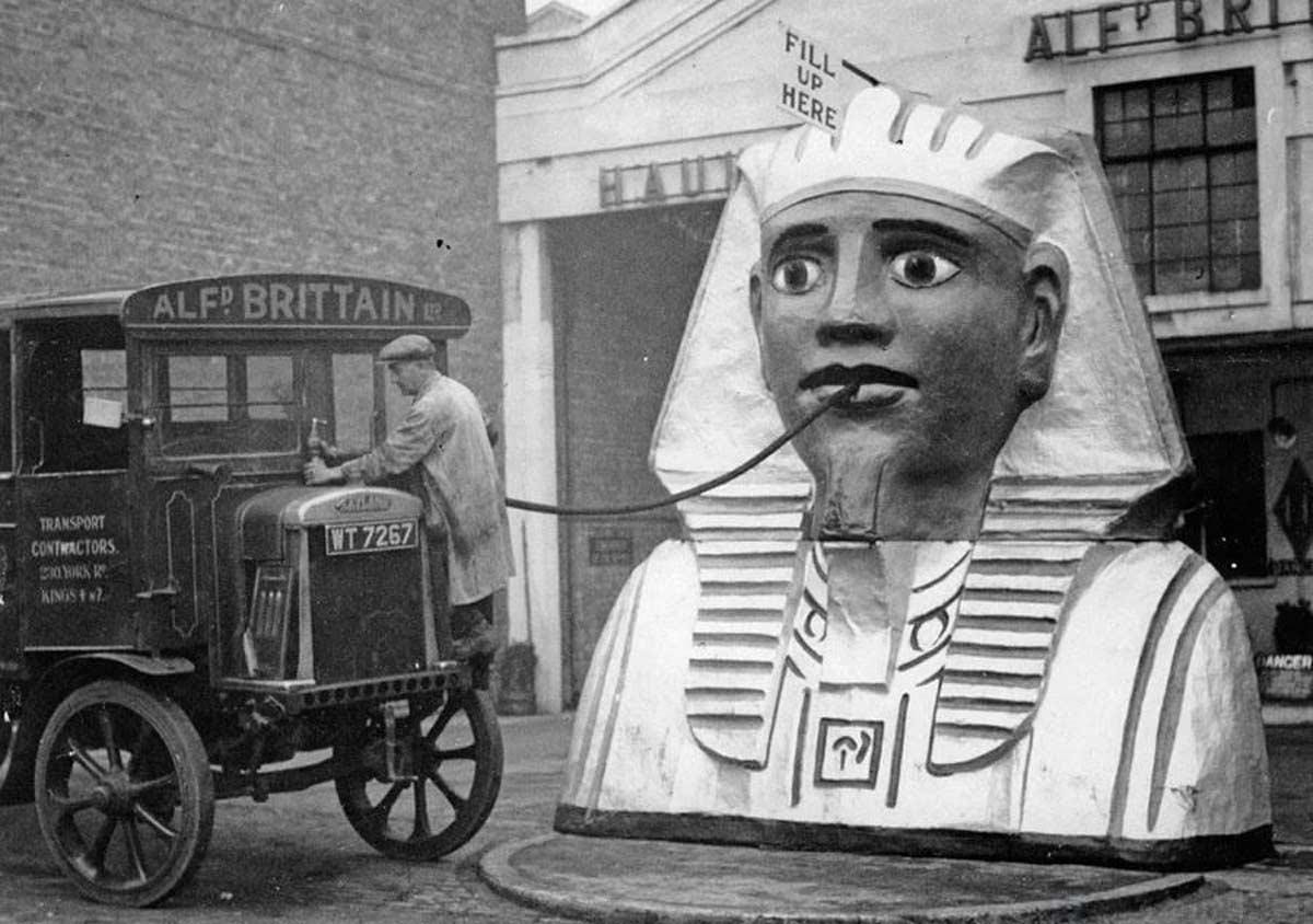 Edwin "Petrol station in London in 1930."