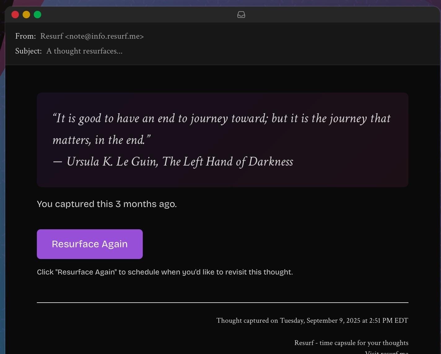Resurf Email yourself a reminder.