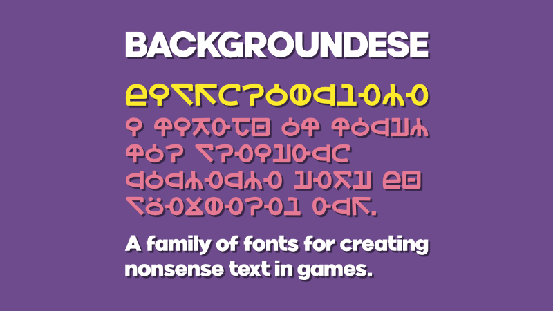 Chequered Ink "We've made a family of fonts we call Backgroundese for creating nonsense text in your games and other projects! 100% Free for commercial use."